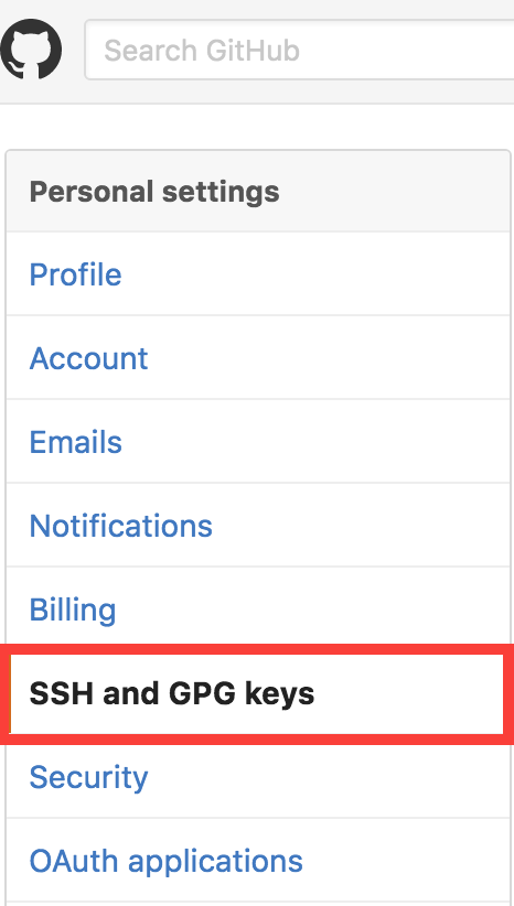 On the settings page, click on the “SSH and GPG keys” menu item in the left pane.