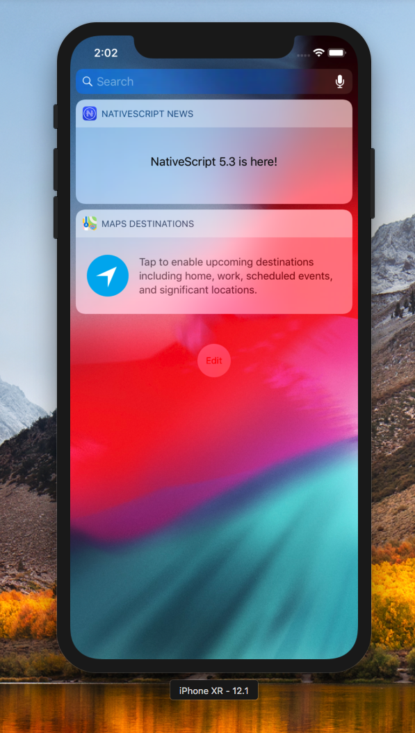 An example of how a NativeScript app can now appear as a “Today” extension type.