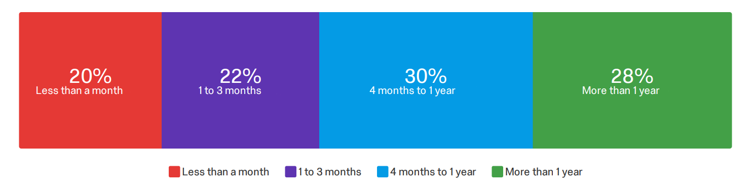 Our typical respondents work in a Technology company which is usually not bigger than 5 people, generating less than $1M of revenue. They most likely have some frontend background and are directly using the technology. On average, they have 3.3 years of experience doing mobile and have been using NativeScript for less than an year. Most often, they were previously developing with Cordova/Ionic (34%), React Native (24%), or Flutter (17%).