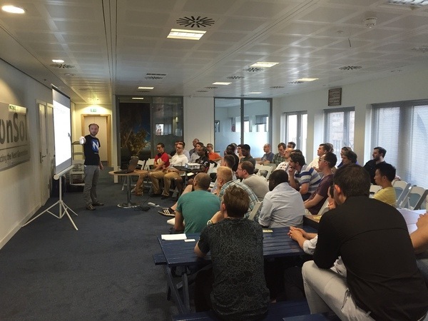 If you were looking closely at the list above, you might have notice that the first London date already happened. That's because last week the London JavaScript Community held the very first Summer of NativeScript meetup. If the pictures are any indication NativeScript was a popular topic. That, or they were amazed by Sebastian Witalec's fashion sense and pointing skills.
