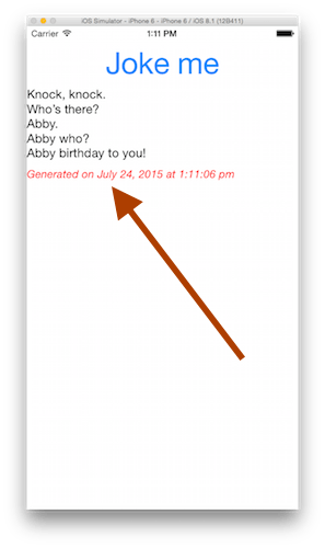 Let's return to the knock knock app and add Moment.js in there as well, in the form of a formatted timestamp—because you wouldn't want to forget the date and time you generated these jokes on.