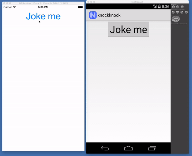 For a slightly more robust example, here's a small NativeScript app that shows off the knock knock jokes module in action: